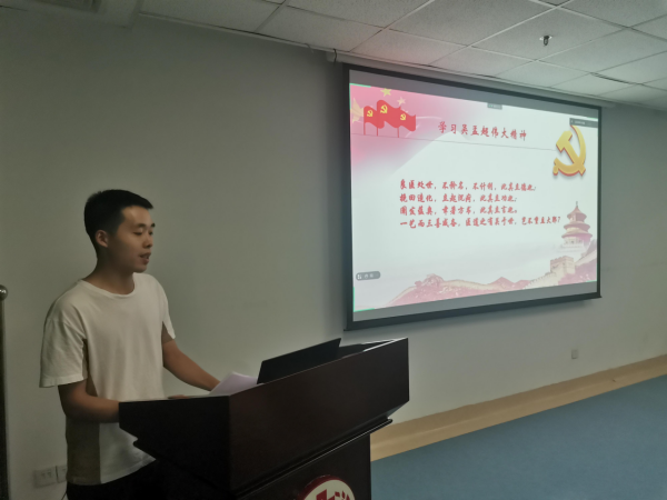 首先,吴俊同学就《学习缅怀吴孟超伟大精神》做主题报告,通过PPT讲解和视频素材,回顾了吴老自从无到有开创中国的肝胆外科、翻译国内第一本肝胆外科教材、制作肝脏血管模型、提出肝脏五叶四段理论、突破肝脏手术的禁区,到以高超的医术切除世界上最大的肝脏海绵状血管瘤、创下肝母细胞瘤手术患者最小年龄记录,再到医者仁心的感人精神、不记名不记利的坚守初心、以病人为中心的高尚医德,生动的展现了吴孟超院士作为“中国肝胆外科之父”的伟大一生。