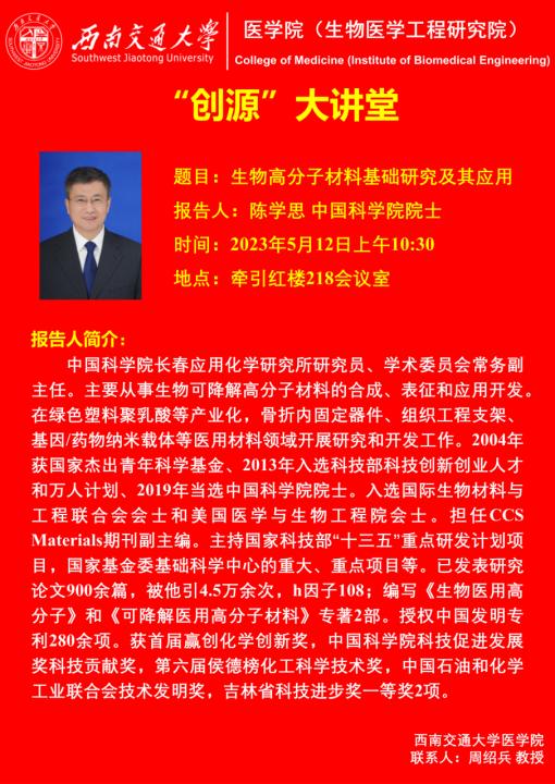 中国科学院长春应用化学研究所研究员、学术委员会常务副主任。主要从事生物可降解高分子材料的合成、表征和应用开发。在绿色塑料聚乳酸等产业化,骨折内固定器件、组织工程支架、基因/药物纳米载体等医用材料领域开展研究和开发工作。2004年获国家杰出青年科学基金、2013年入选科技部科技创新创业人才和万人计划、2019年当选中国科学院院士。入选国际生物材料与工程联合会会士和美国医学与生物工程院会士。担任CCS Materials期刊副主编。主持国家科技部“十三五”重点研发计划项目,国家基金委基础科学中心的重大、重点项目等。已发表研究论文900余篇,被他引4.5万余次,h因子108;编写《生物医用高分子》和《可降解医用高分子材料》专著2部。授权中国发明专利280余项。获首届赢创化学创新奖,中国科学院科技促进发展奖科技贡献奖,第六届侯德榜化工科学技术奖,中国石油和化学工业联合会技术发明奖,吉林省科技进步奖一等奖2项。